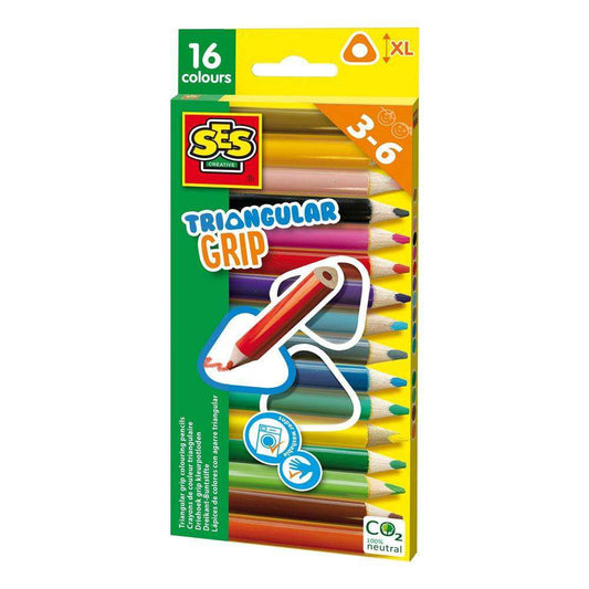 SES CREATIVE Children's Triangular Grip Thick Colouring Pencils, 16 Pieces, 3 to 6 Years