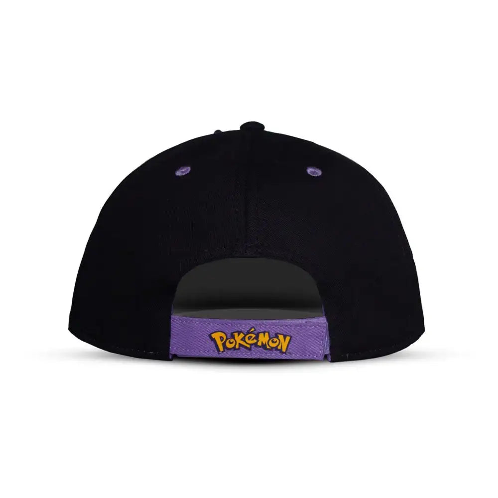 Show off your love for the mischievous Pokemon, Gengar, with this black flat-brim snapback cap. Featuring a felt patch of Gengar sticking out his tongue, this cap is perfect for any Pokemon fan.