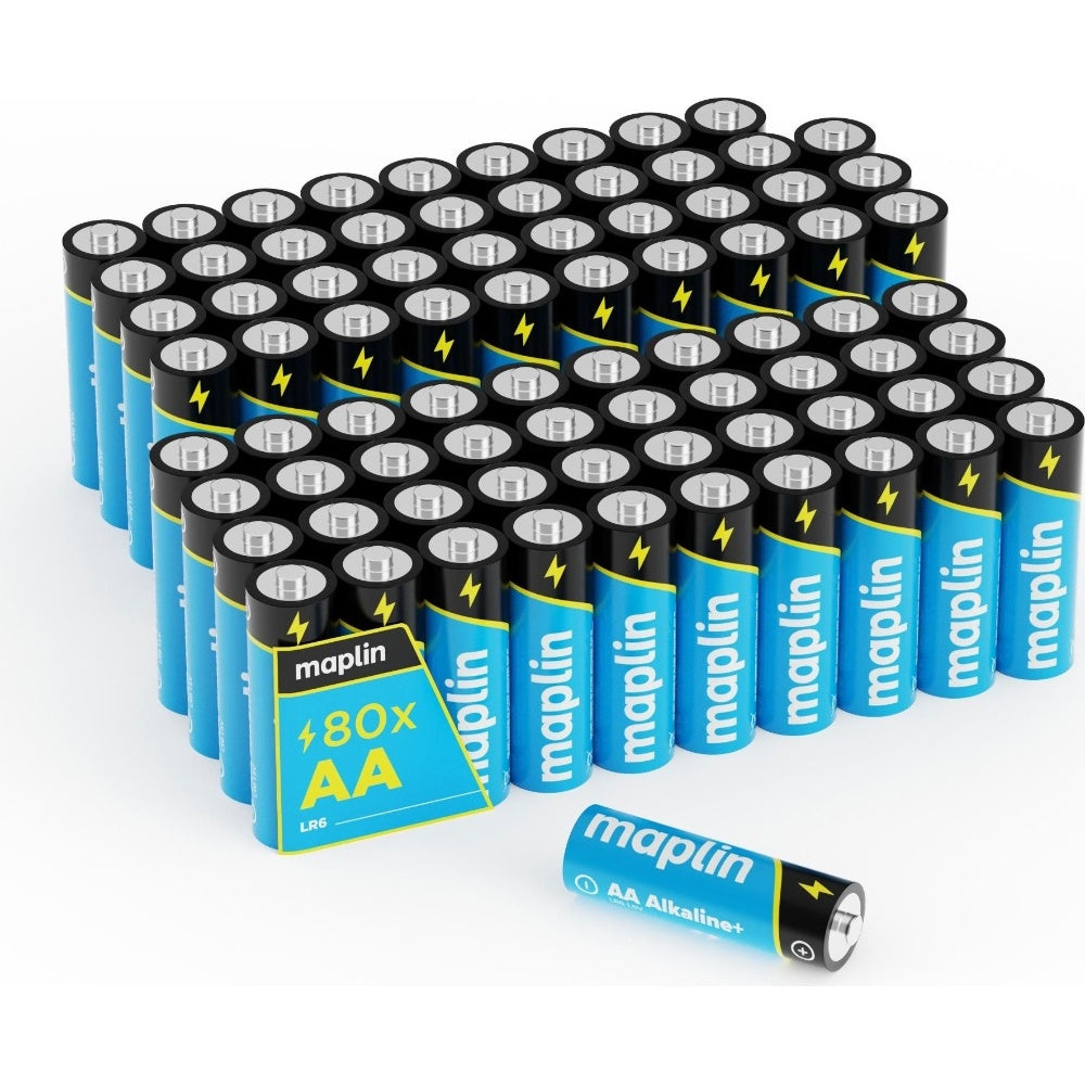 Maplin AA LR6 1.5V Alkaline Batteries 7 Year Shelf Life High Performance - Pack of 80
