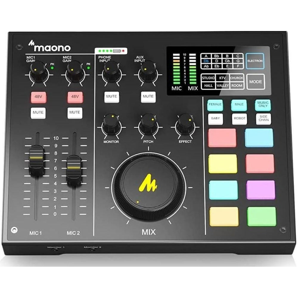 The MAONOCASTER AU-AM100 Portable Podcast Console is a powerful all-in-one audio interface designed for creators, streamers, and podcasters who want professional sound in a portable setup. With easy-to-use controls, high-quality preamps, and real-time audio effects, the AU-AM100 makes podcasting and live streaming simple and effectiveno complicated studio gear required.