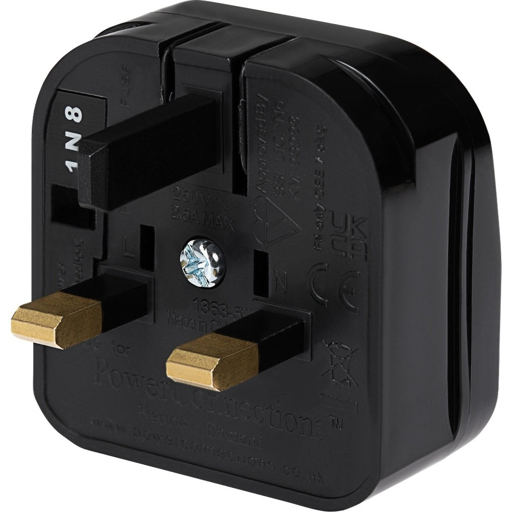 Maplin Euro 2 Pin Plug to UK Mains Plug Converter with 5 Amp Fuse & Screw Cover - Black
