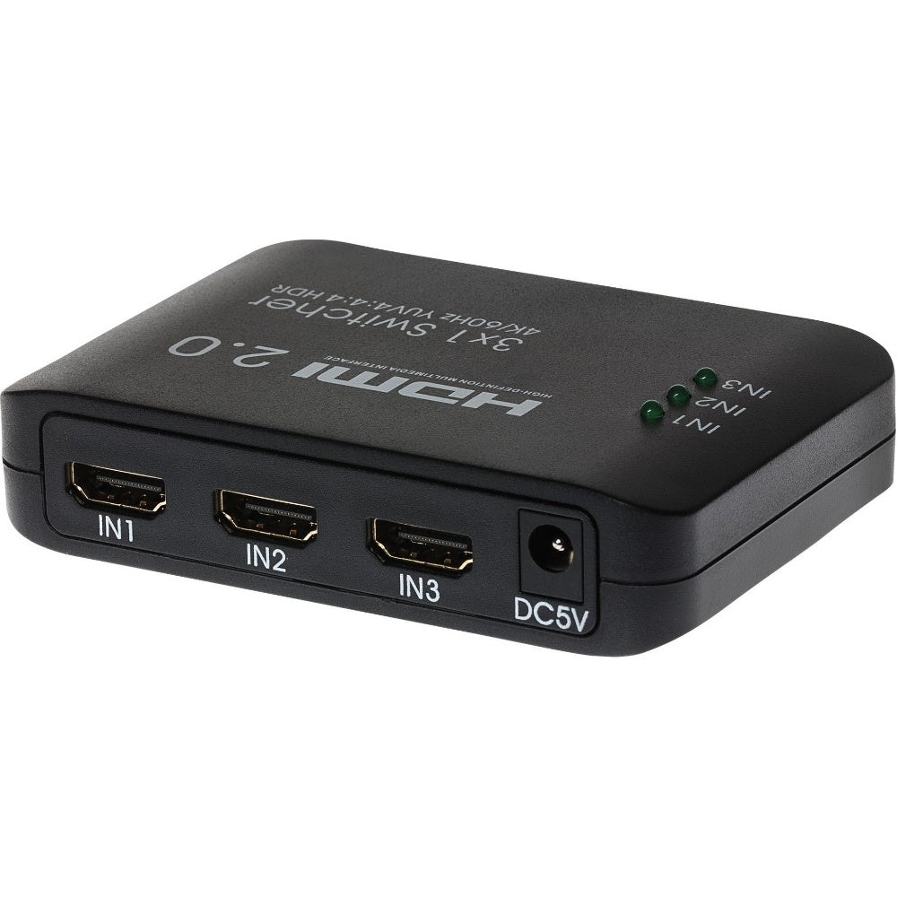 Maplin HDMI Switch 3 Ports In 1 Port Out Ultra HD 4K@60Hz with Remote Control