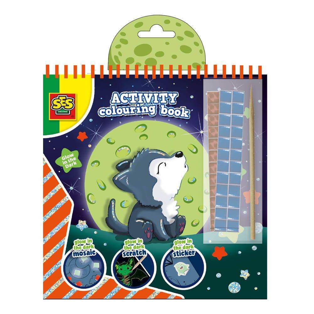 SES CREATIVE 3-in-1 Activity Glow-in-the-Dark Colouring Book, Three Years and Above