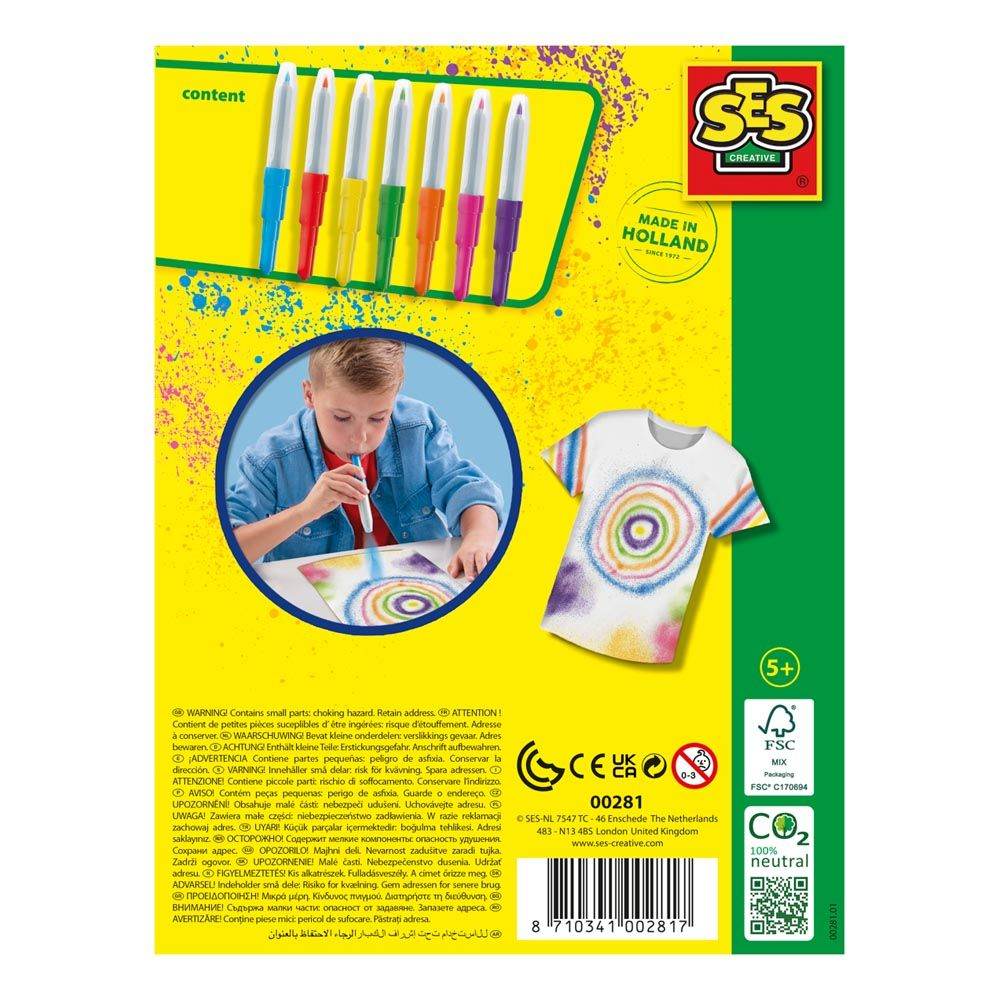 These airbrush blow markers are something special! They can easily be turned into a marker that you can blow into. But that's not what makes these markers special. It's that they can be used on textiles! And that means that you can let your creativity run wild on T-shirts, socks or hats. Which artwork will you make first? SES has been the specialist in creative toys for more than 40 years. Child development is the central concept in the development of our products. As development is important during the early years, it is important that a child has the opportunity to develop his or her talents and to use their creativity. Besides developing creativity, safety and quality are the most... Read More +