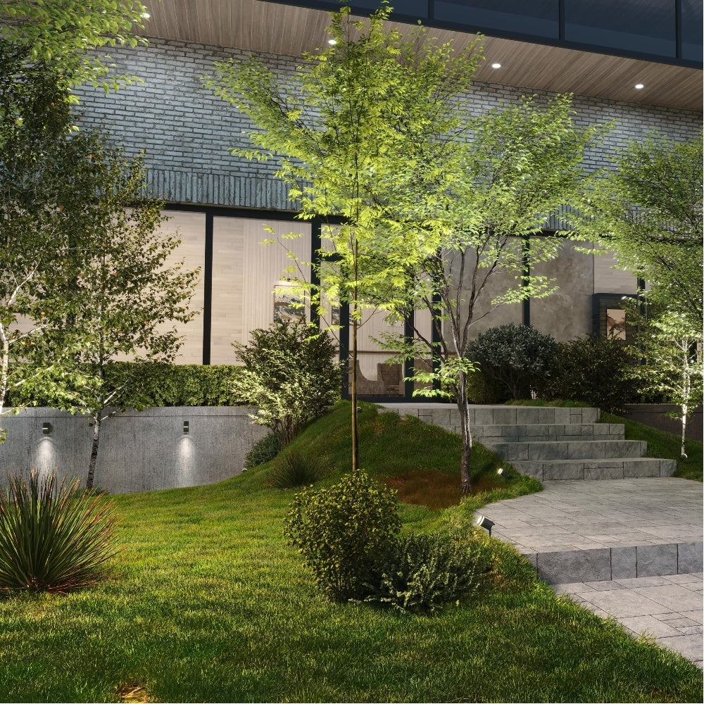 Glass halo edging provides an atmospheric lighting design affect in the illuminated area. Co-ordinating Bi-Directional and Spike lights available in the Marinus Range.