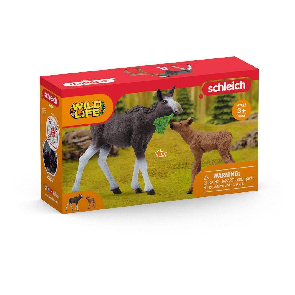 SCHLEICH Wild Life Mosse with Calf Toy Figures Set, 3 to 8 Years, Multi-colour